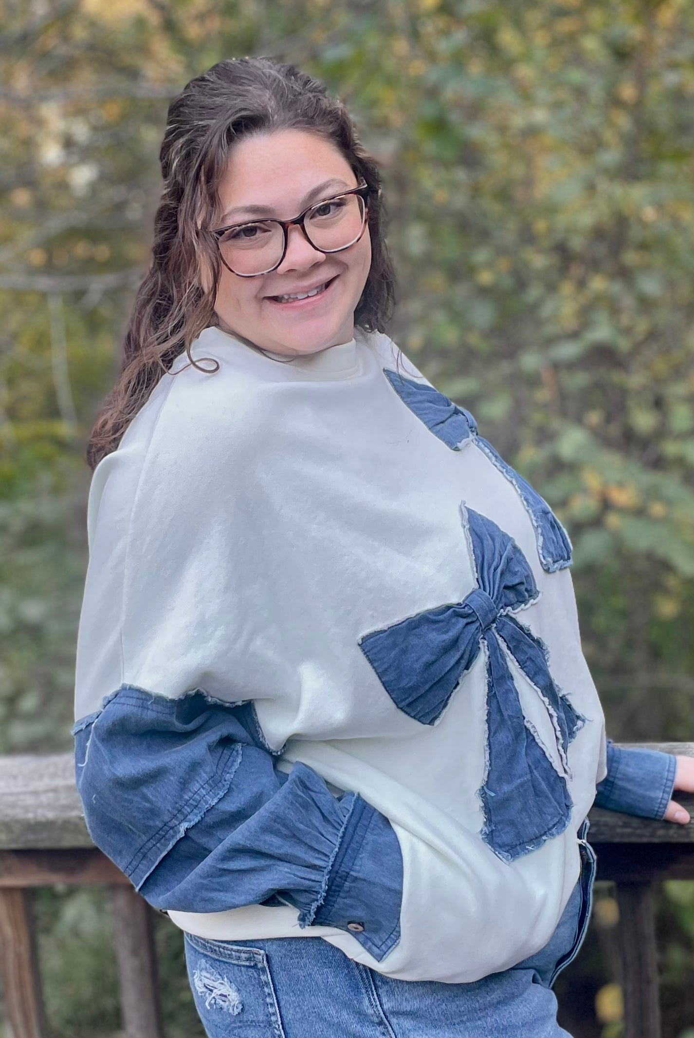 Tie one on with our Blue Bow sweatshirt—the cozy layer that says you've got style and comfort on your mind. Long sleeves keep you warm while the charming bow detail adds a playful twist to your everyday look. Perfect for lounging, running errands, or just being your most comfortable self. Slip it on and feel the hug of soft fabric that makes staying in feel like going out.