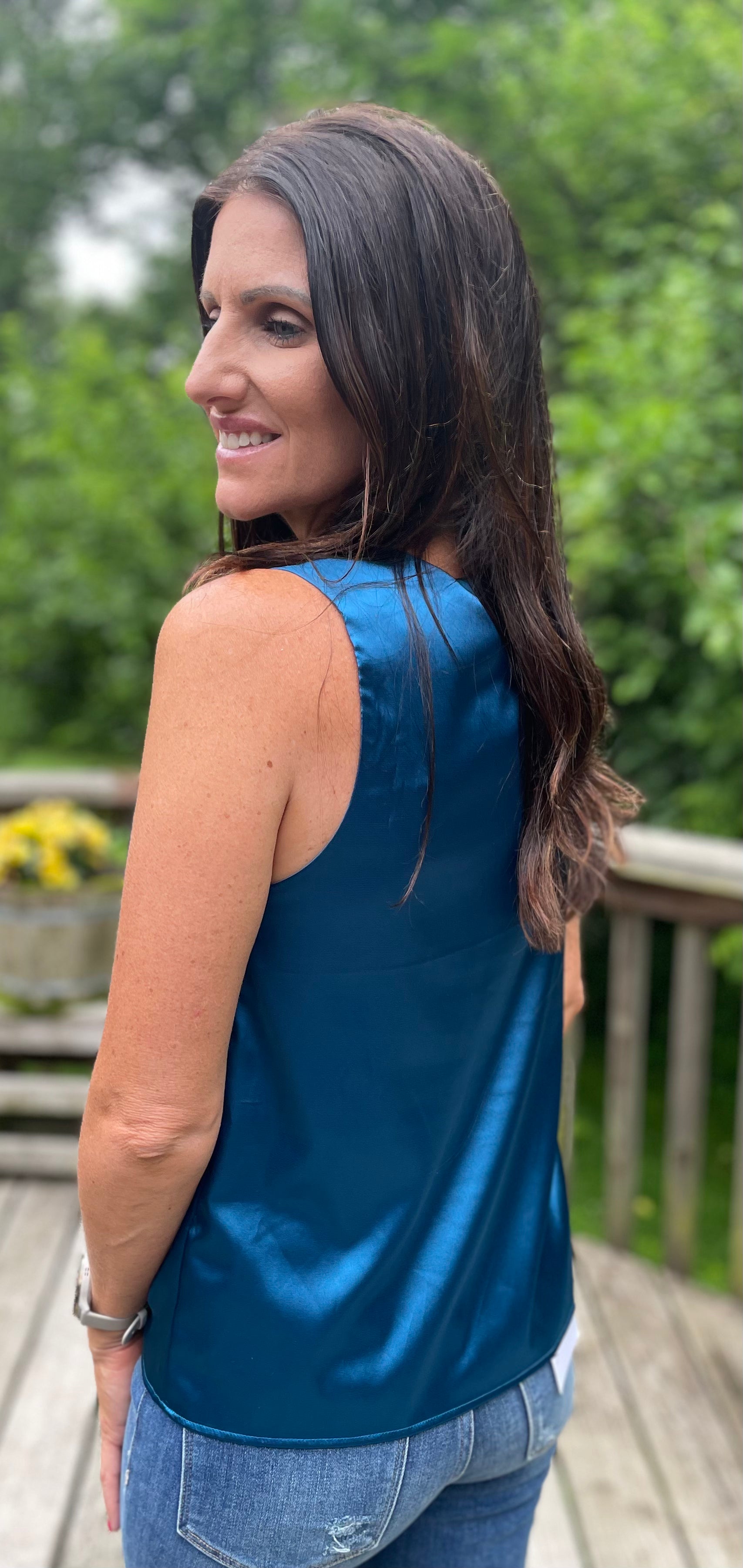 Blue Satin V Neck Tank