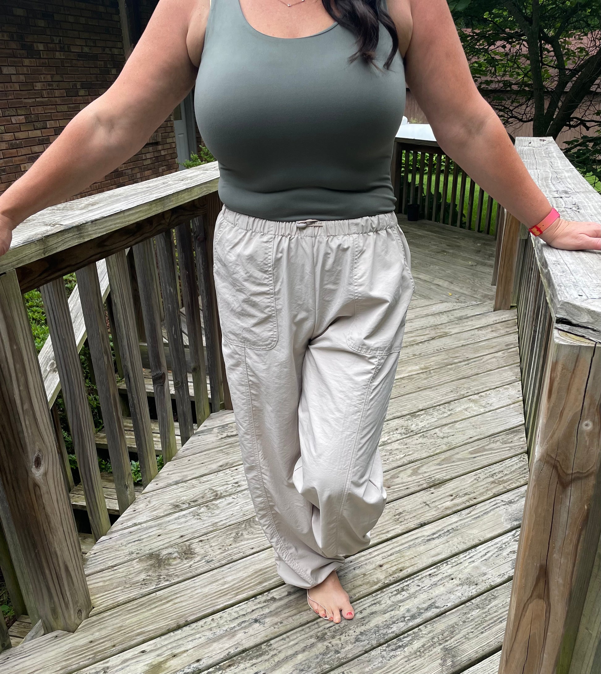 Step into comfort and style with these Cream Cargo Pants! Made from lightweight windbreaker material, they offer a breezy, flowy fit that moves with you. Featuring cinched cuffs for a trendy silhouette and handy front pockets, these pants blend practicality with playful flair—perfect for your next casual adventure.