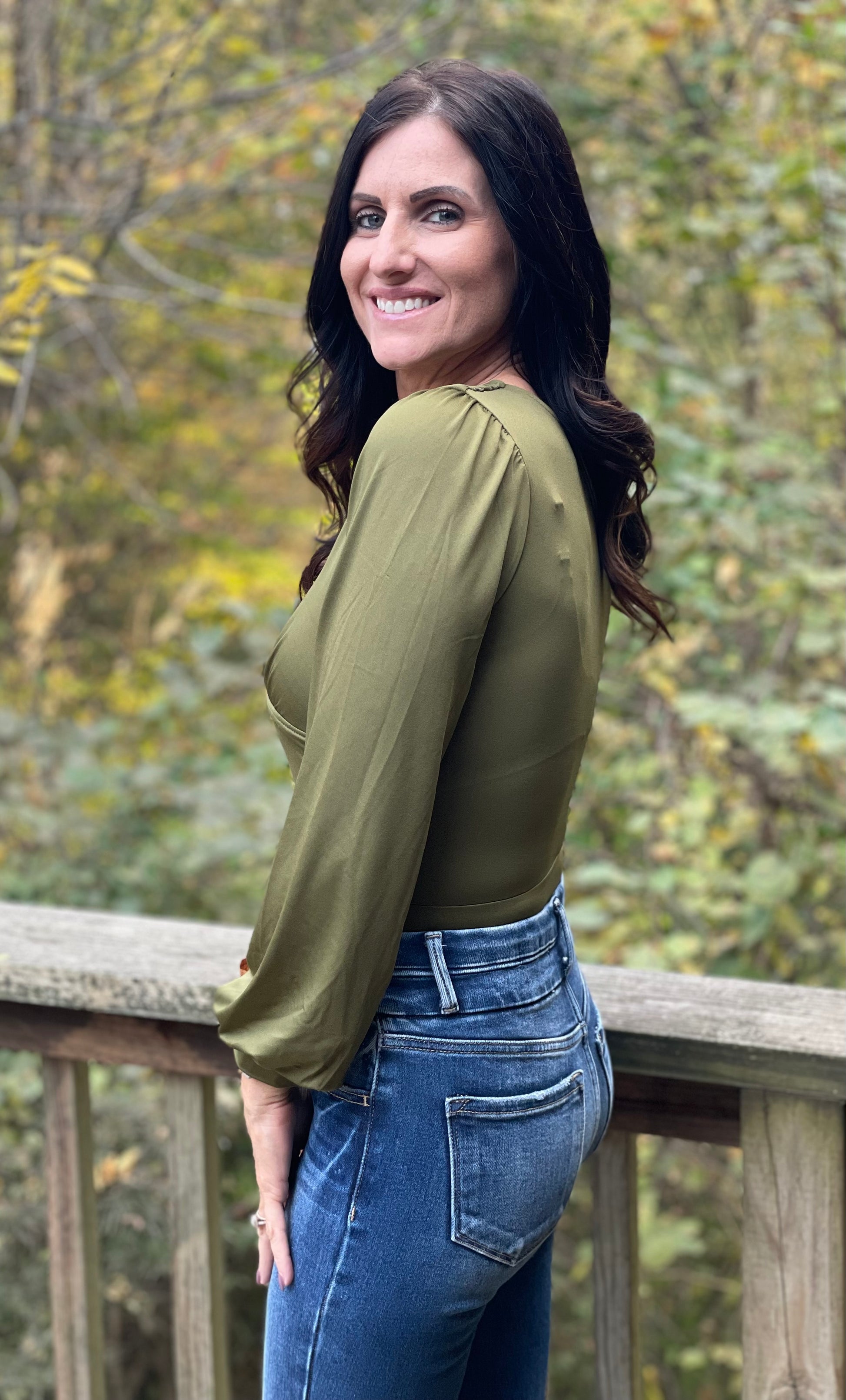 This bodysuit features a V- neck top with a a stunning crossover look! Very slimming and great for a night out!