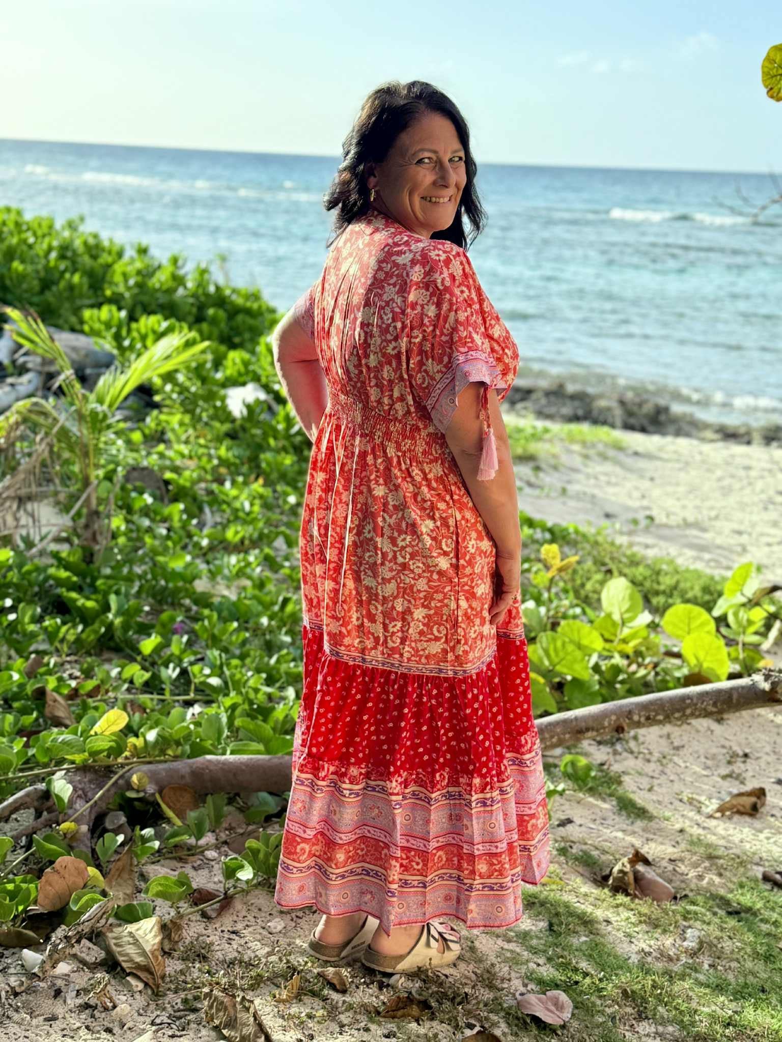 Embrace carefree vibes with this flowy, multi-print boho dress featuring playful tassels dangling from the sleeves. Its soft fabric and comfortable fit make it perfect for sunny days and spontaneous adventures. The flattering V-neck adds a touch of charm to your effortless style.