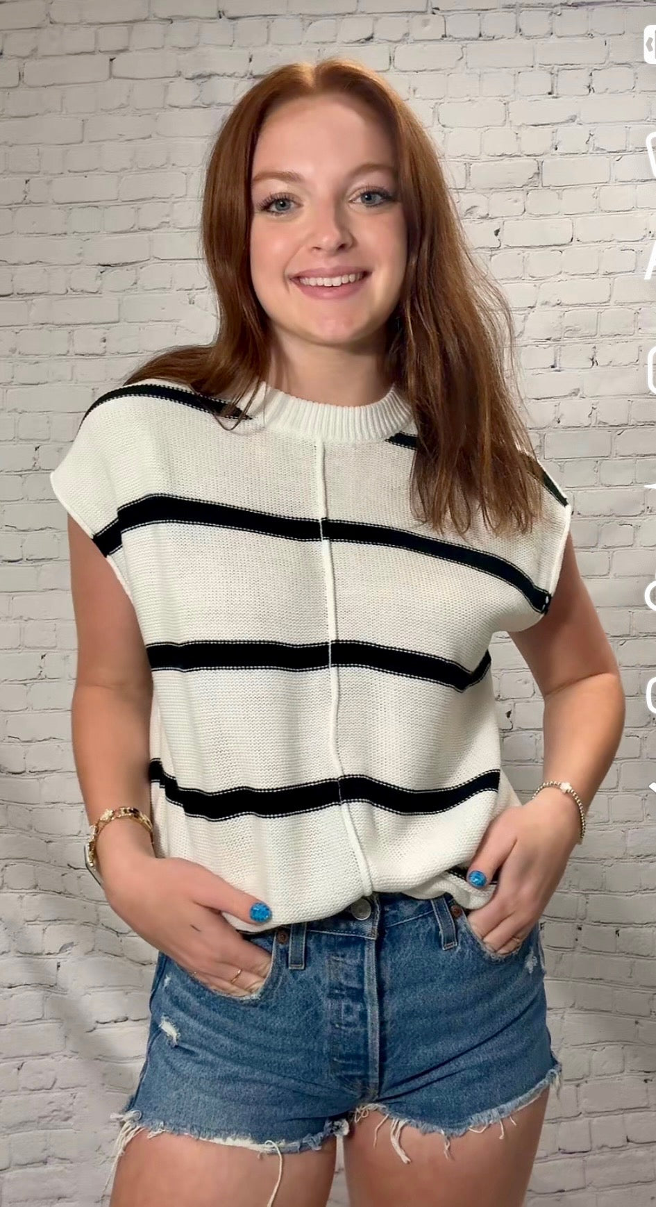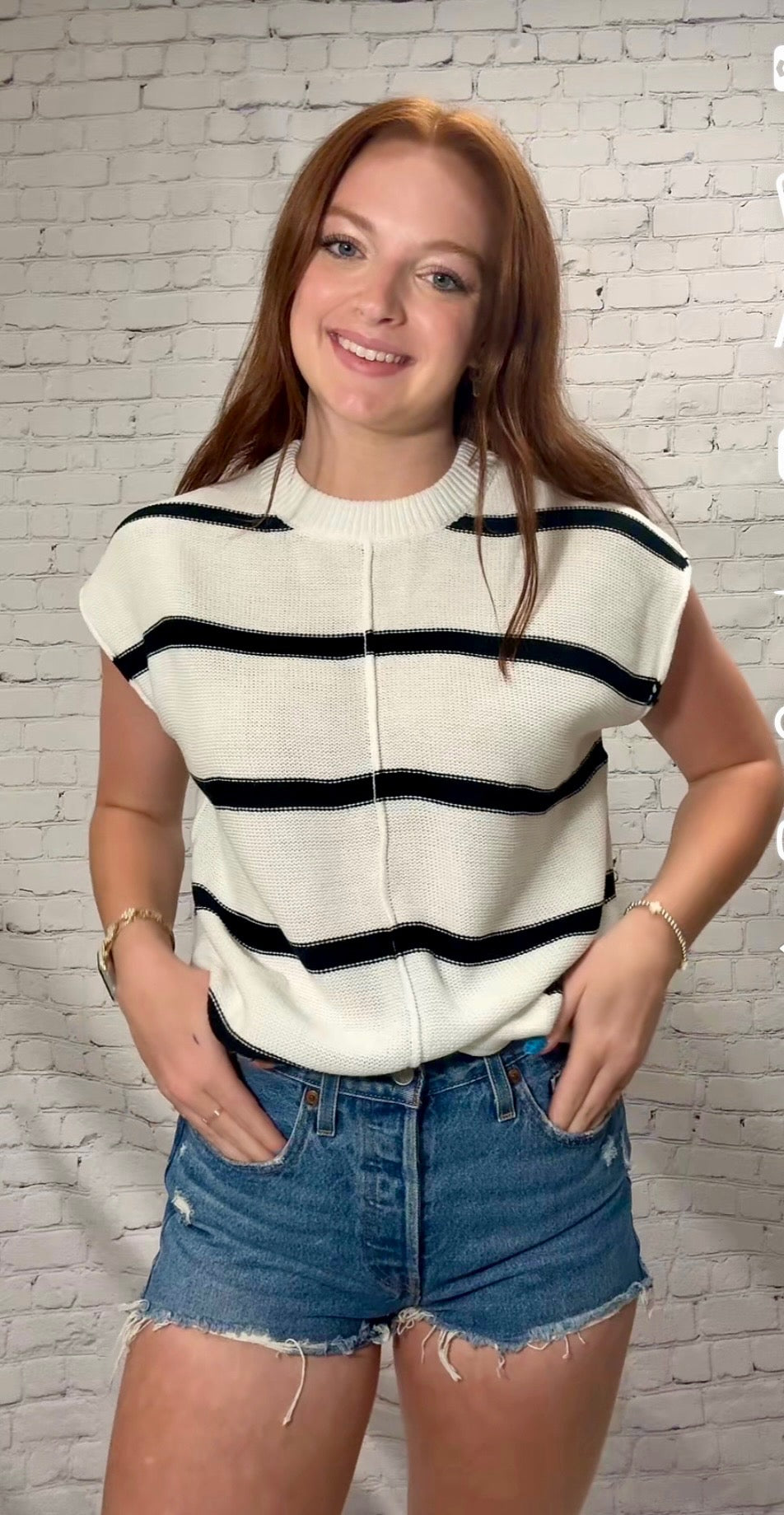 The Dockside Top is your new go-to for effortless style and comfort. Crafted from soft, breathable knit fabric, it features bold stripes and a playful seam down the middle that adds a unique twist. Light and breezy, this top keeps you cool while turning heads with its fun, vibrant look. Perfect for sunny days and casual outings!