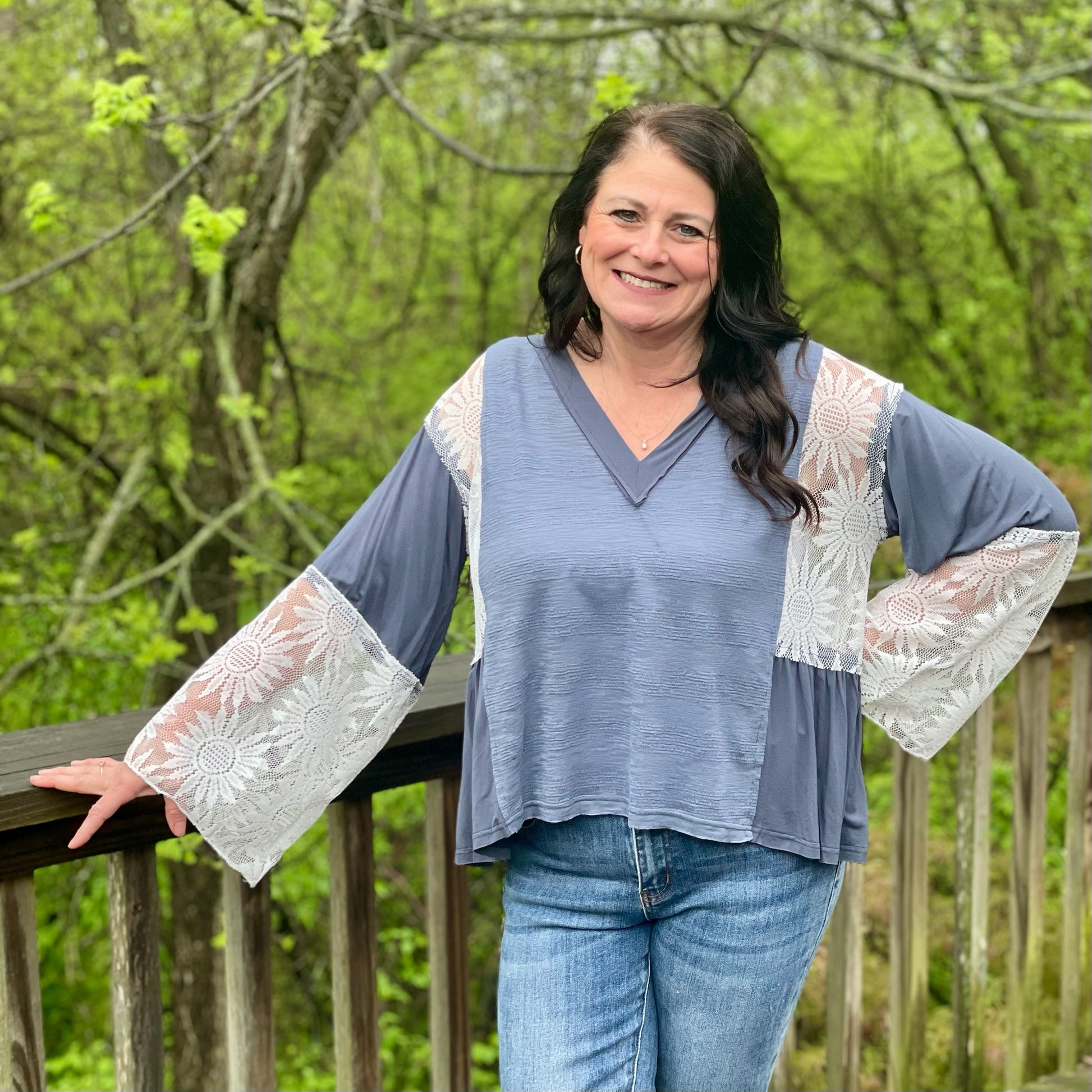 The Flower Lace V-Neck Top boasts a soft, delicate flower lace with a slightly ruffled v neck and intricate flower detailing down the back. Perfect for adding a touch of whimsy to any outfit.