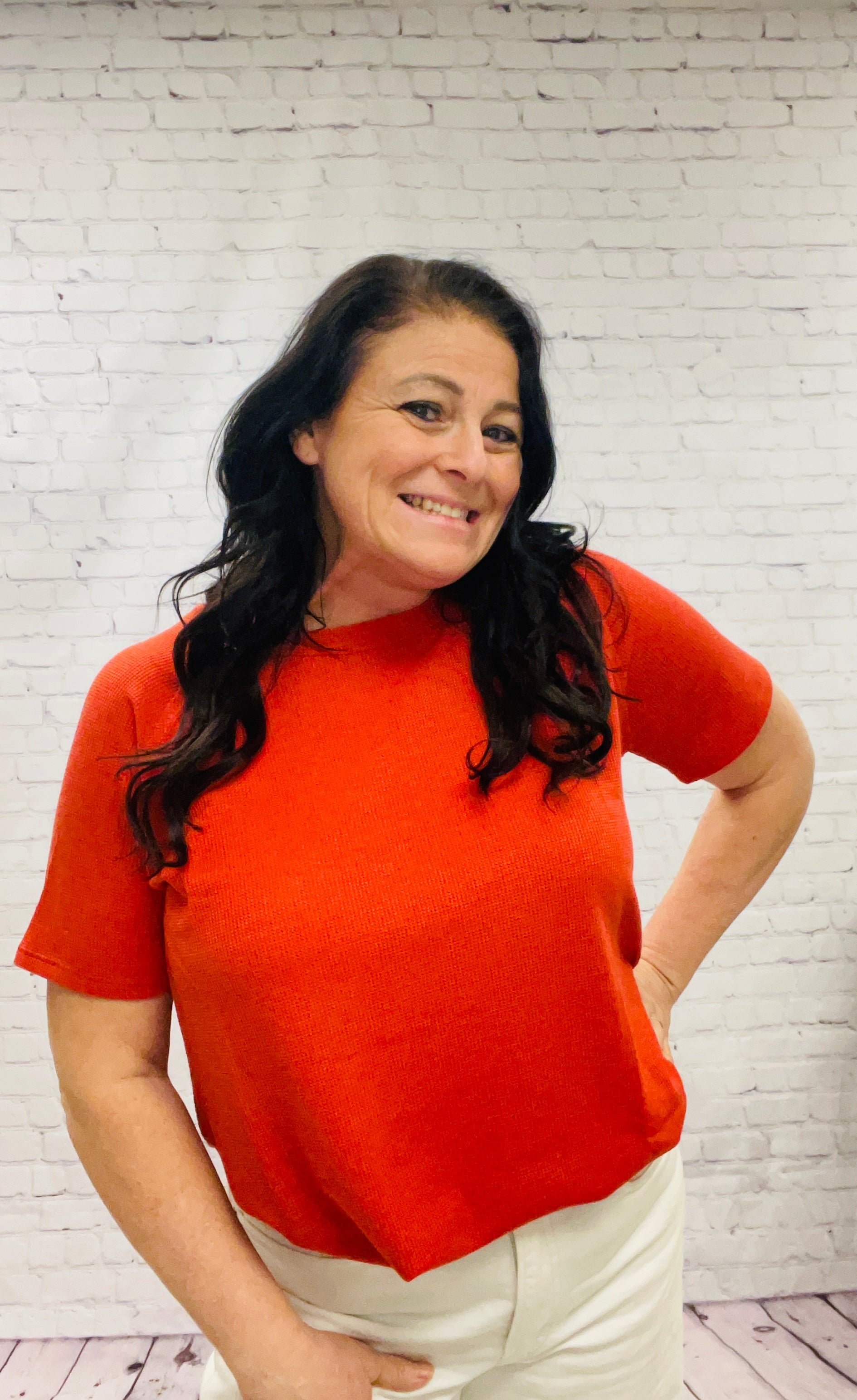 This short sleeve top has a slightly textured, ribbed knit and a relaxed fit that's flattering yet comfy. The side slits and subtle scoop neckline give it a modern twist, while the soft, breathable fabric makes it a go-to for everyday style.