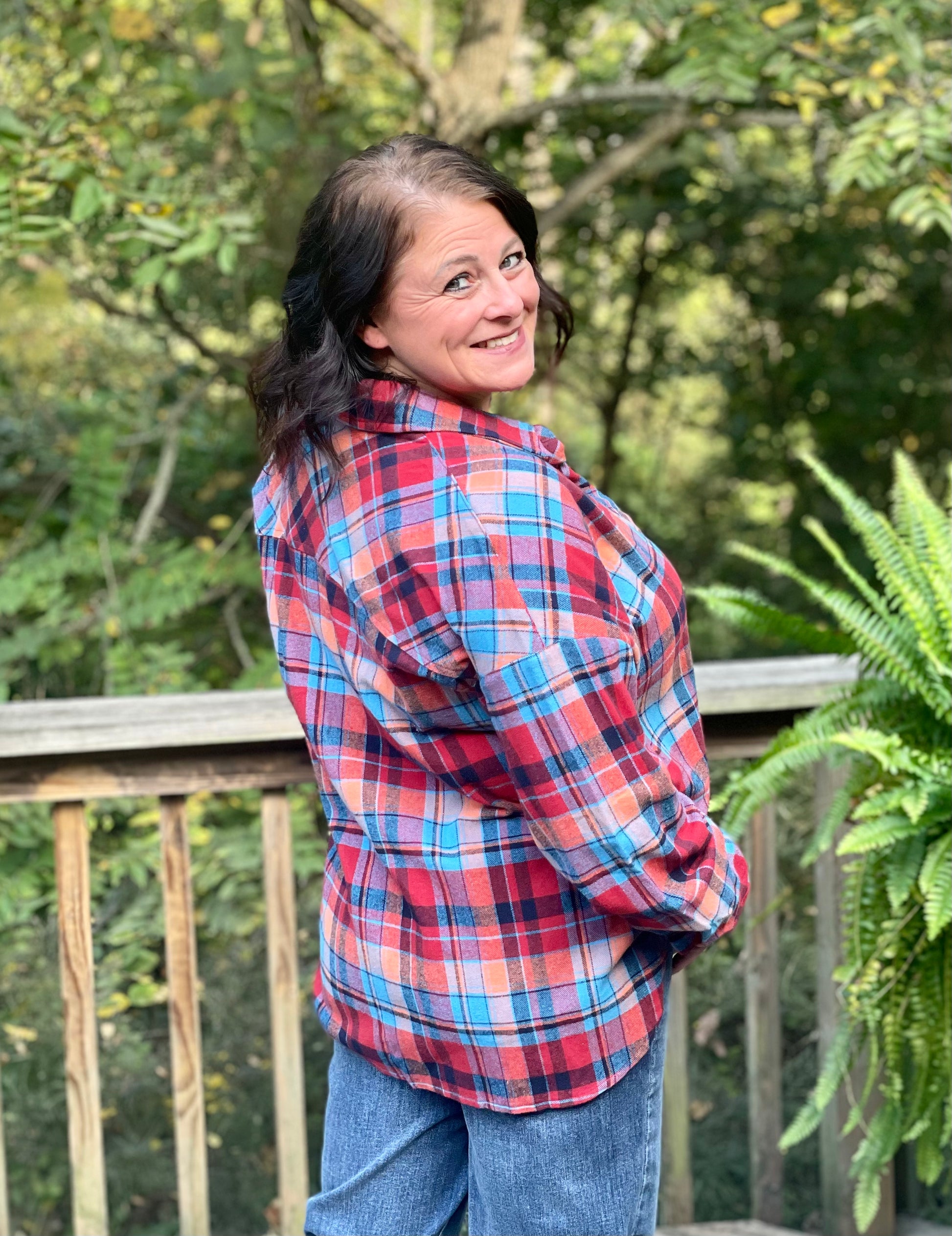 Wrap yourself in cozy vibes with this Multi Color Flannel, designed to feel like a soft hug all day long. Its playful mix of colors adds a fun pop to your outfit, while the comfy fabric keeps you relaxed whether you're lounging or out on an adventure. Perfect for those who love both comfort and style with a cheerful twist!