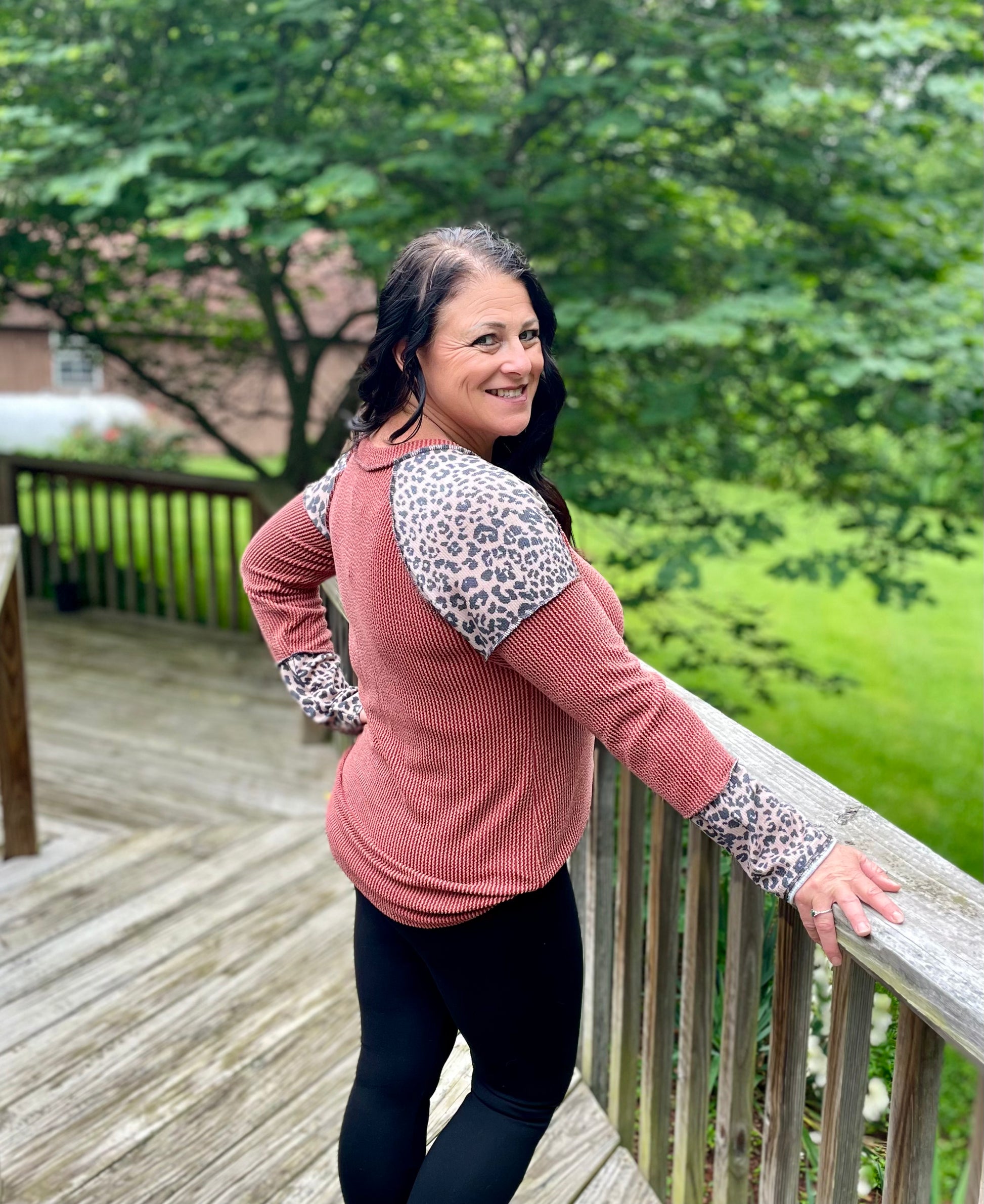 Rust & Leopard Ribbed Long Sleeve