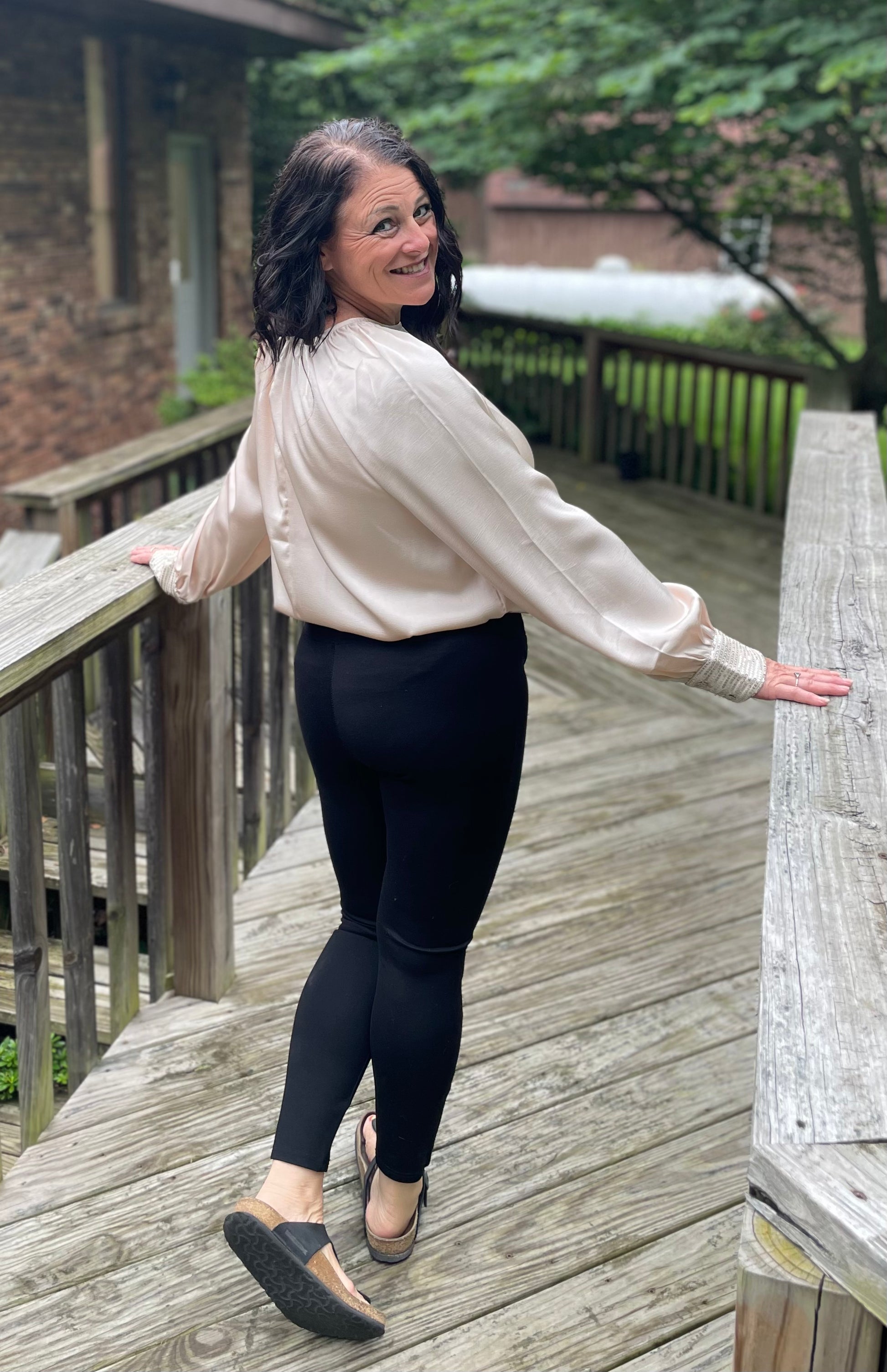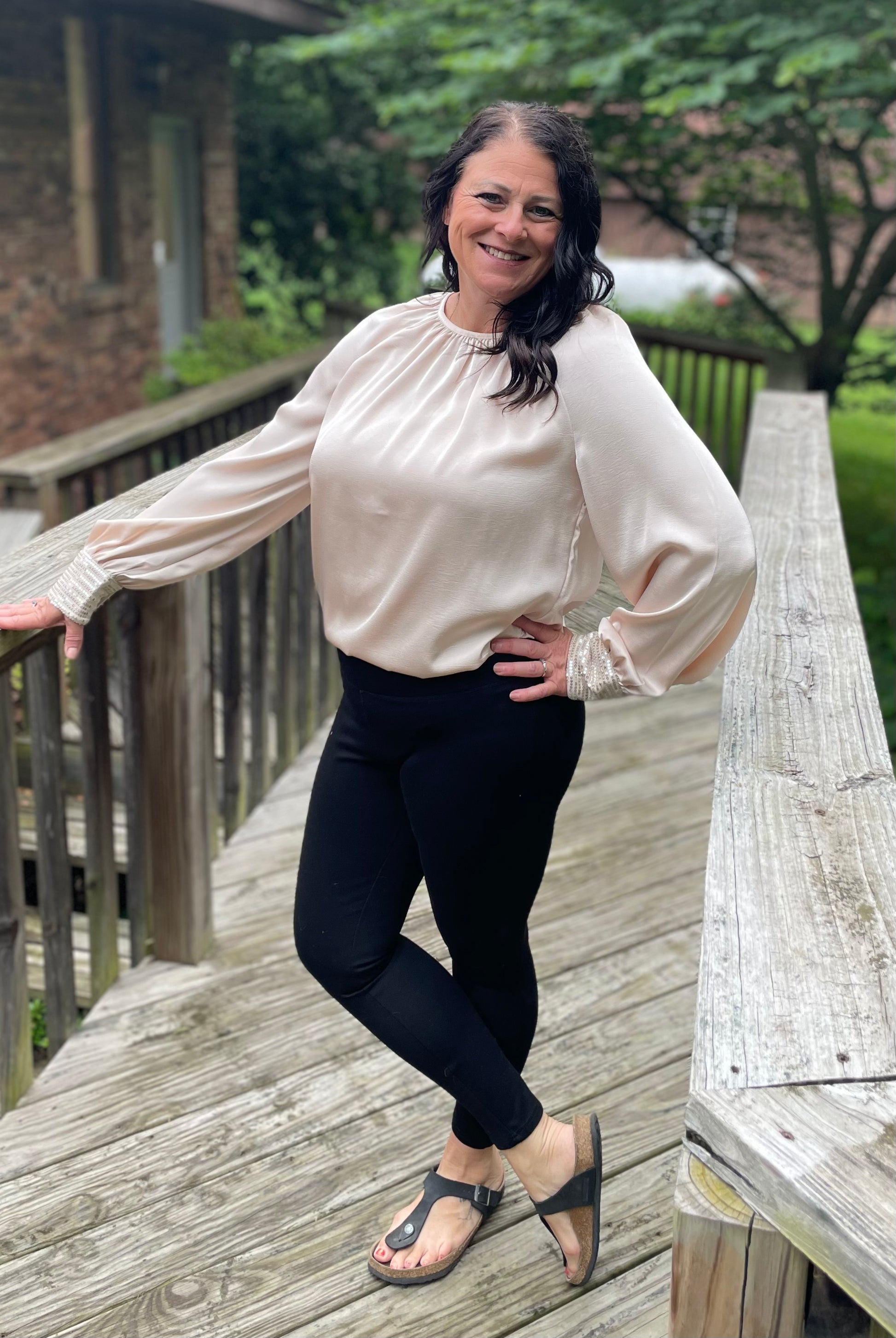 This Satin Sequin Blouse brings a playful twist to elegance with its silky smooth feel and charming balloon sleeves. The pleated top adds a flirty touch, while the sparkling sequin cuffs catch the light for a dash of glam. A stretchy neckline ensures comfort, making it perfect for dressy occasions where you want to shine and have fun.