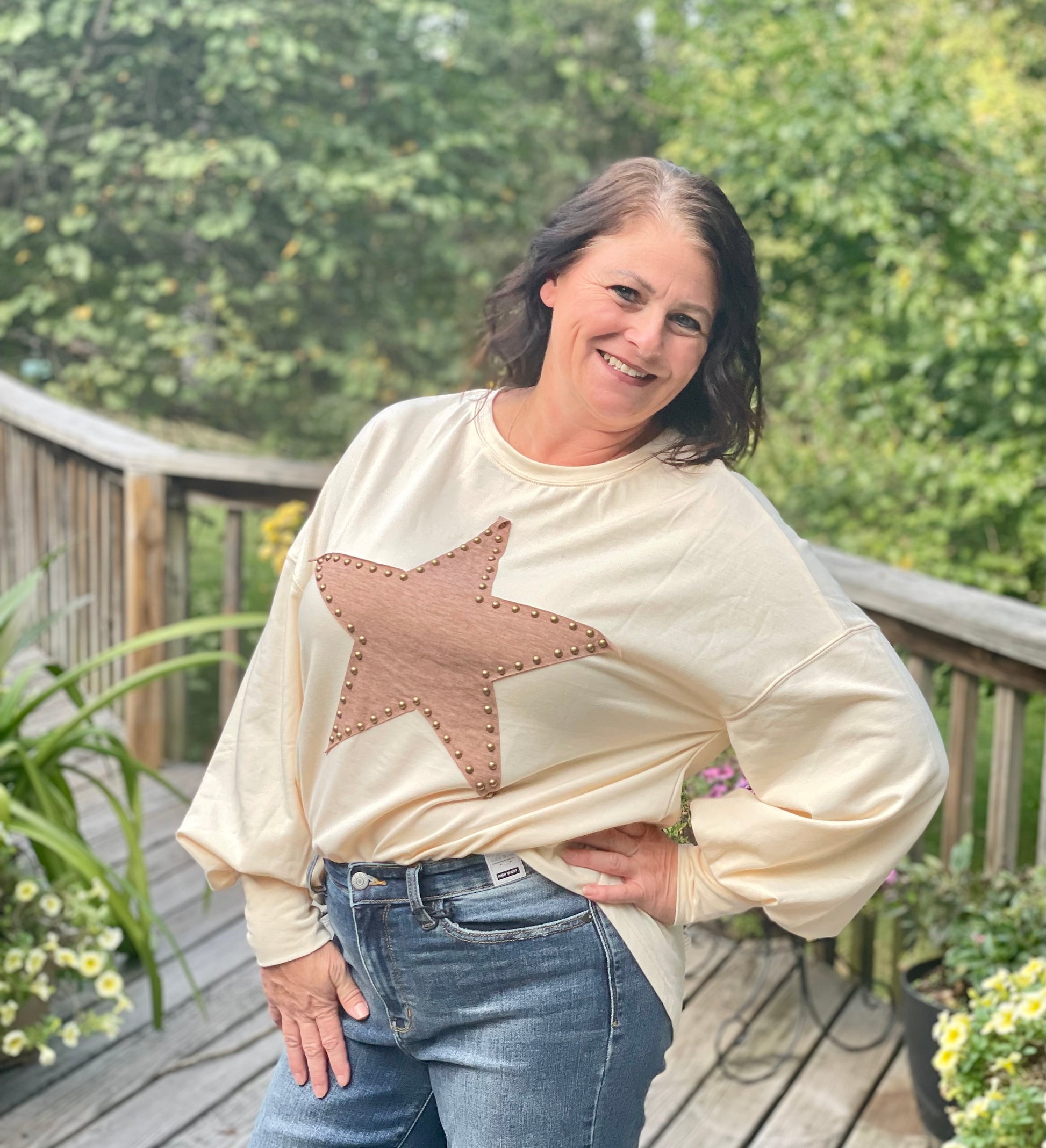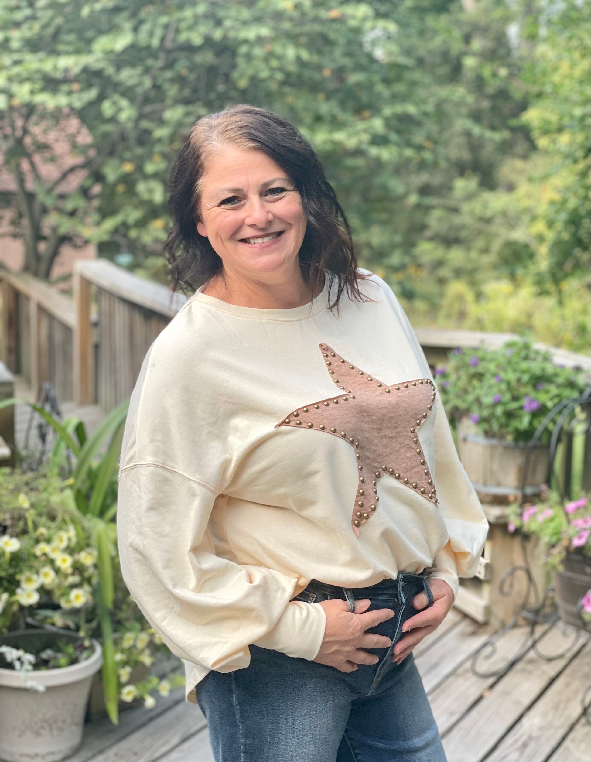 This is a nice pullover that features a big studded star on the front! It is a nice medium weight material!