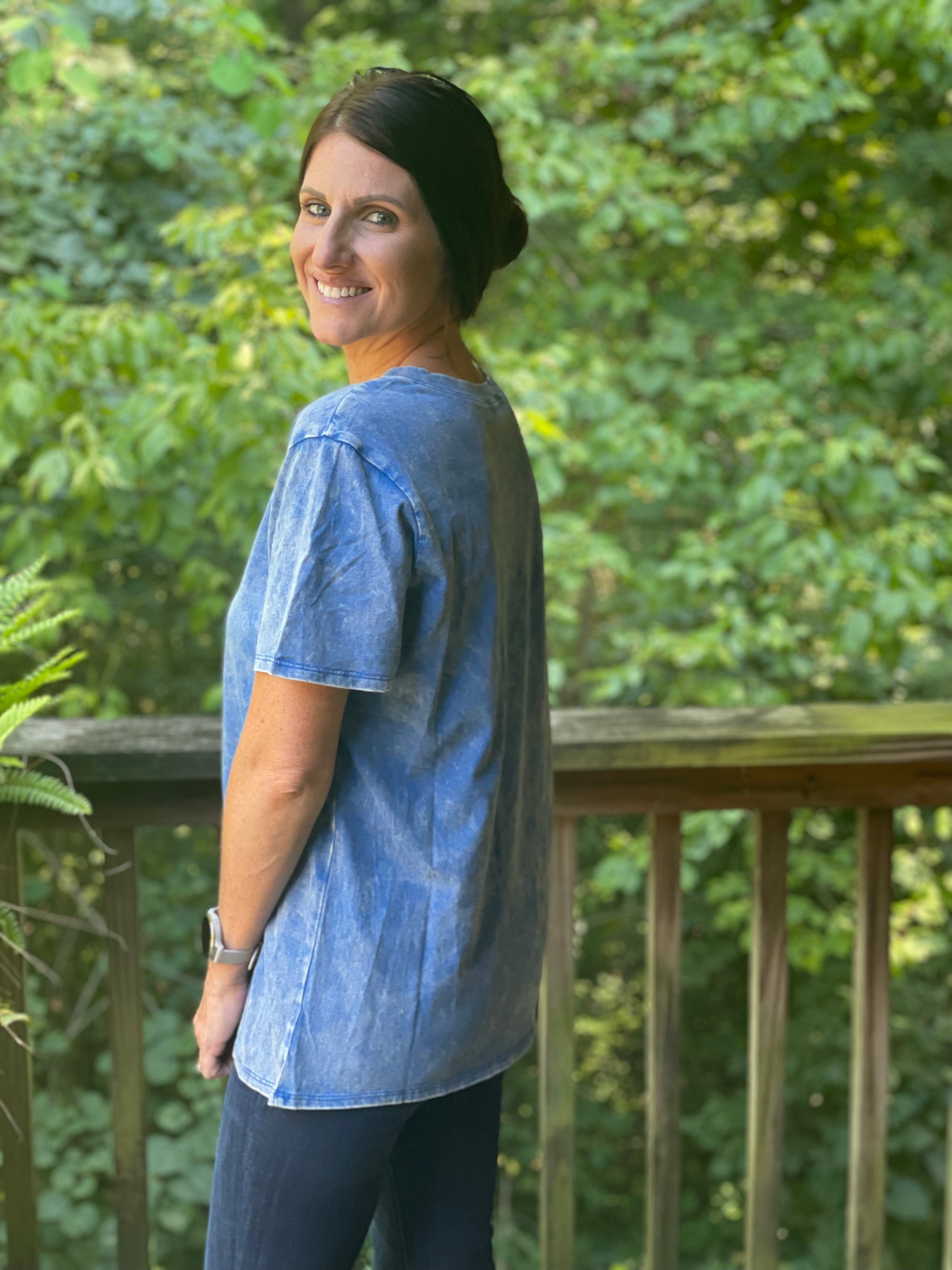 Embrace effortless comfort with The Blue Skies Tee—a soft, mineral-wash v-neck in a dreamy denim blue. Its relaxed fit and stretchy, flowy fabric make it your go-to for easy, all-day wear. Whether paired with jeans or layered for cooler days, this tee brings playful charm to any look.