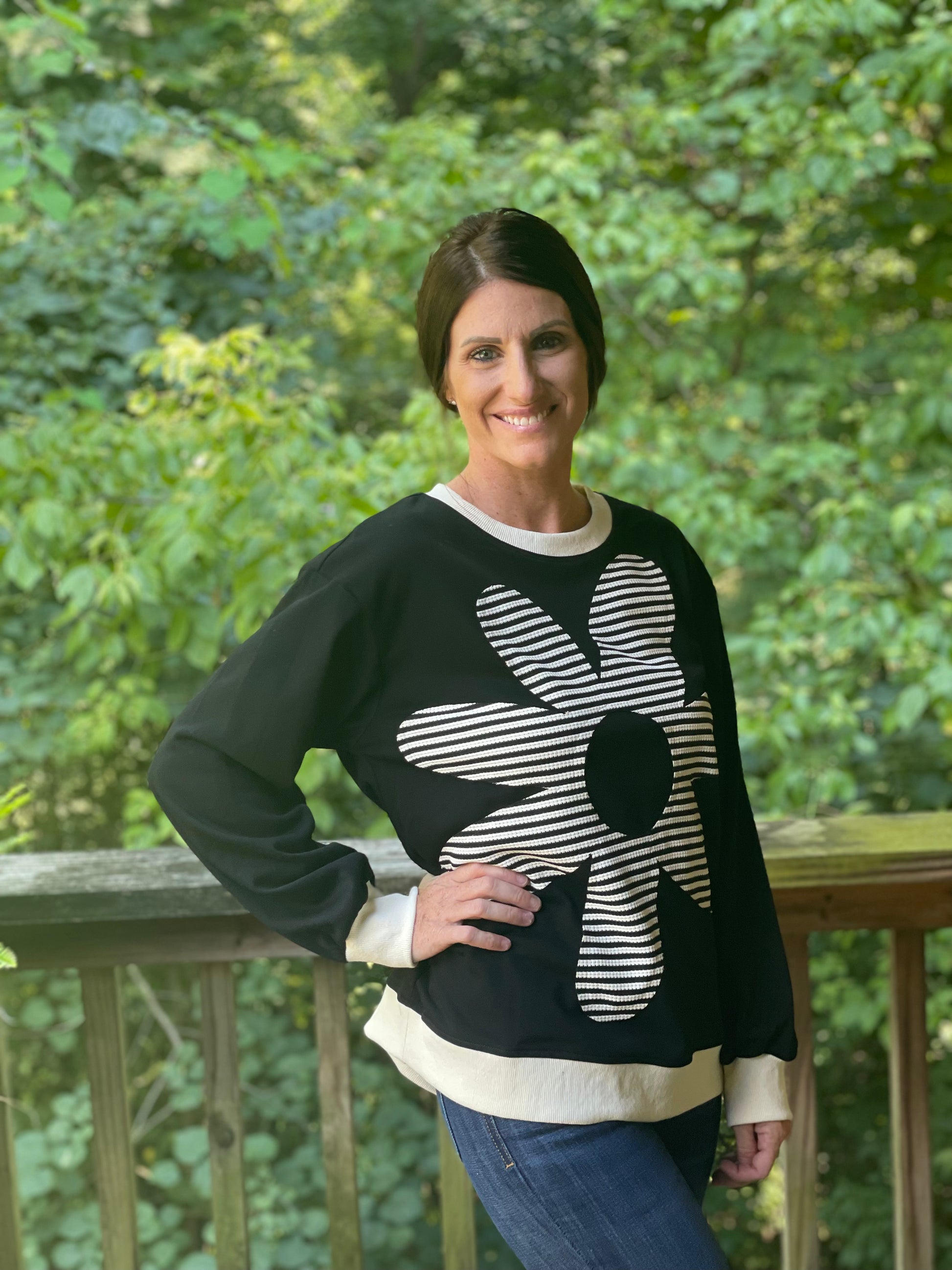 The Bold Bloom Top is your new go-to for cozy, stylish vibes. With its long sleeves and thicker, soft fabric, it keeps you comfy and warm while the big flower print adds a splash of fun to your look. The stretchy fit and trendy band around the bottom give it a flattering shape that pairs perfectly with your favorite denim. Ready to bloom with confidence? This top’s got you covered in style and ease!