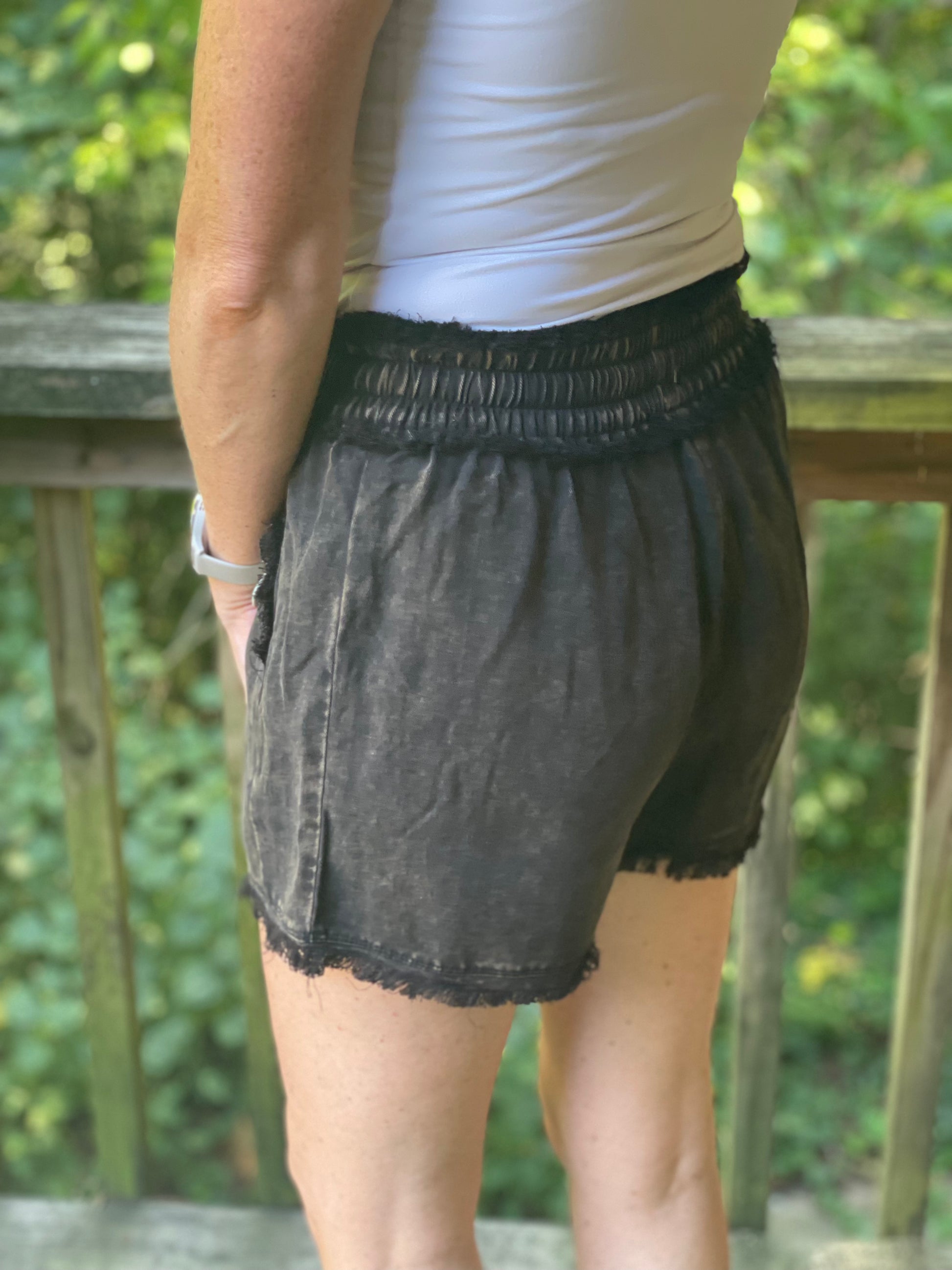 These Black Breezy Days Shorts bring effortless comfort with their soft, flowy fabric and relaxed fit. The acid wash detail adds a trendy vintage vibe, while the adjustable waistband ensures the perfect fit for playful summer days. Finished with a fun frayed edge at the top, these shorts are ready to keep you cool and stylish all season long.