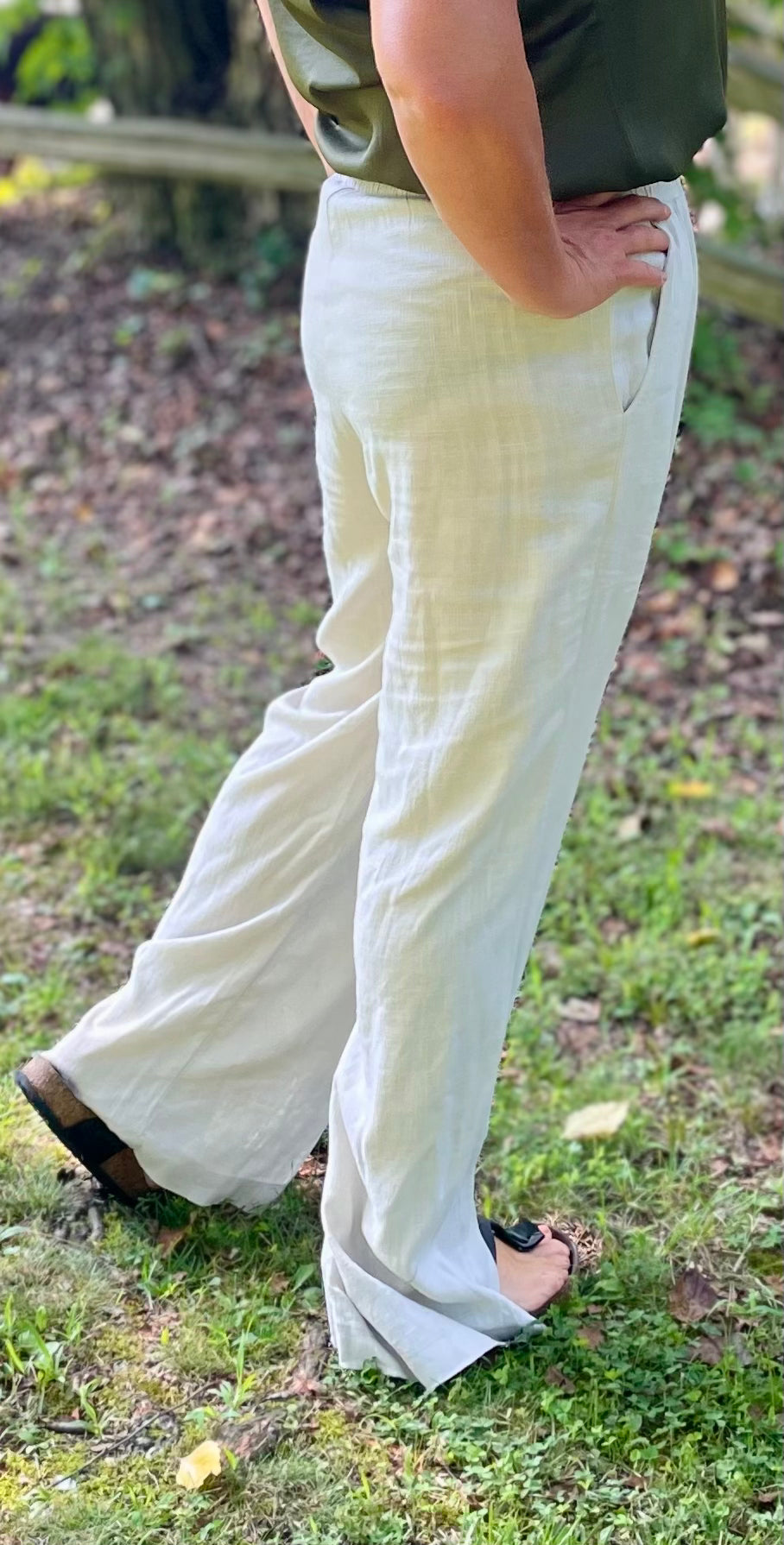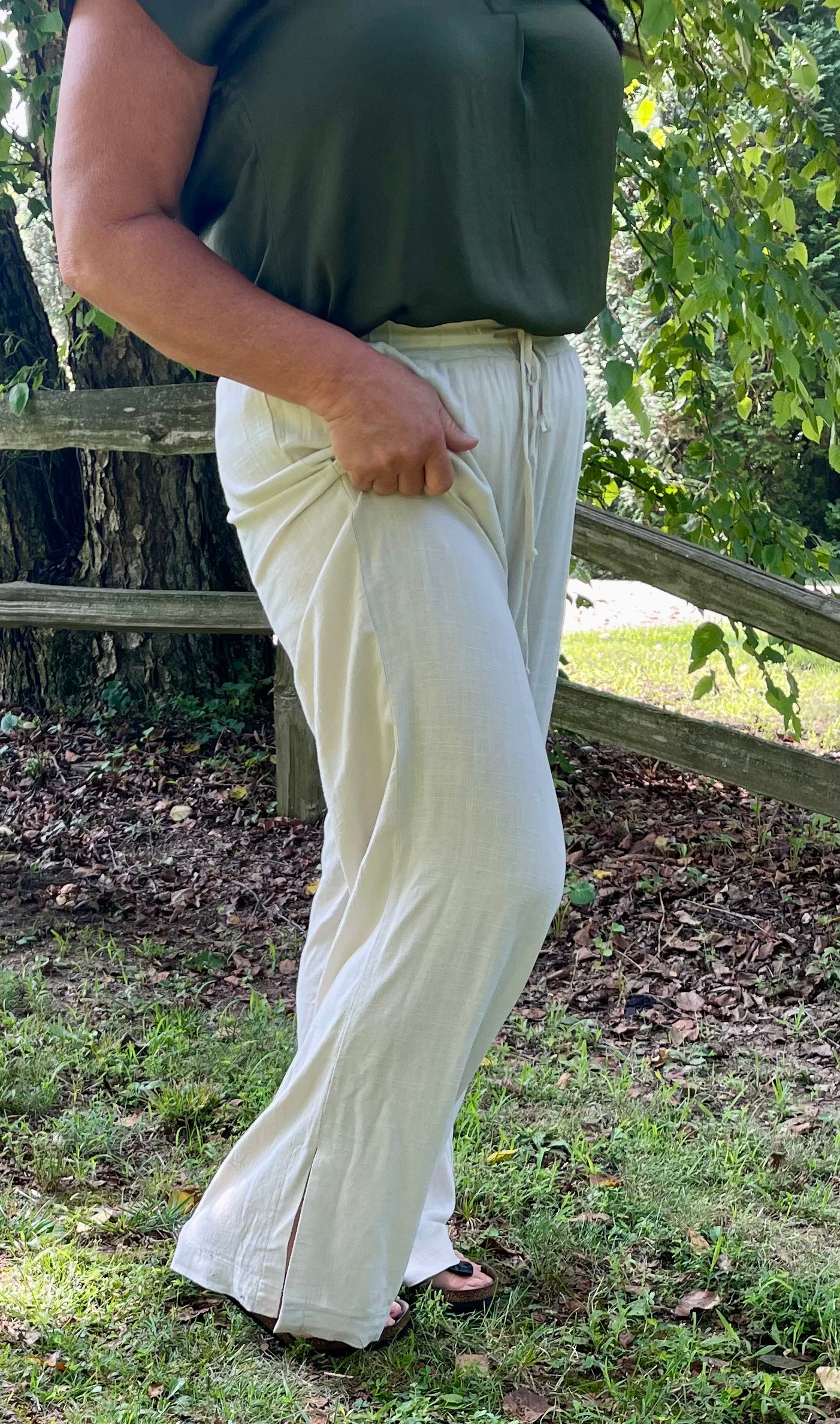 These flowy City Drape Pants are crafted from soft, lightweight linen that feels like a breeze on your skin. Featuring a comfy drawstring waist and a playful side slit, they move with you all day long. Perfectly versatile, they pair effortlessly with anything in your wardrobe for a relaxed yet stylish look.