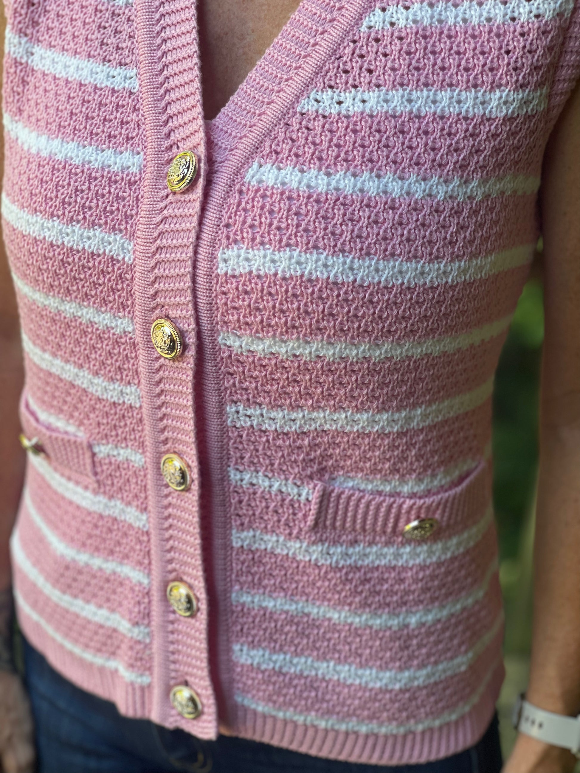 Add a pop of playful color to your wardrobe with The Legally Chic Top. This bright fun pink sweater vest features a flattering V-neck and charming button details that bring a touch of whimsy to any outfit. Crafted from a soft, stretchy fabric, it promises all-day comfort while keeping you stylishly cozy. Perfect for layering or wearing solo, this vest makes every look effortlessly fun and fabulous.