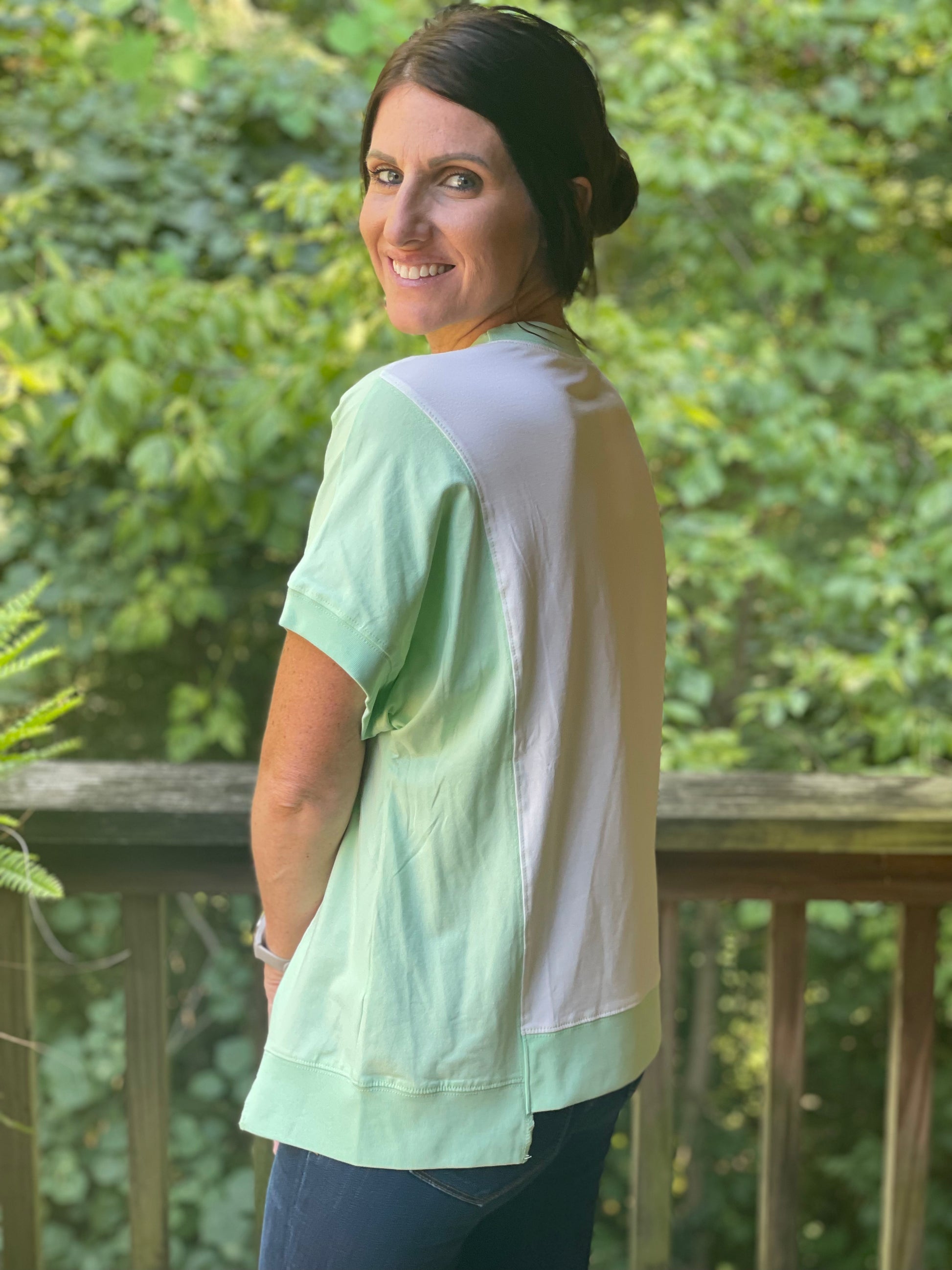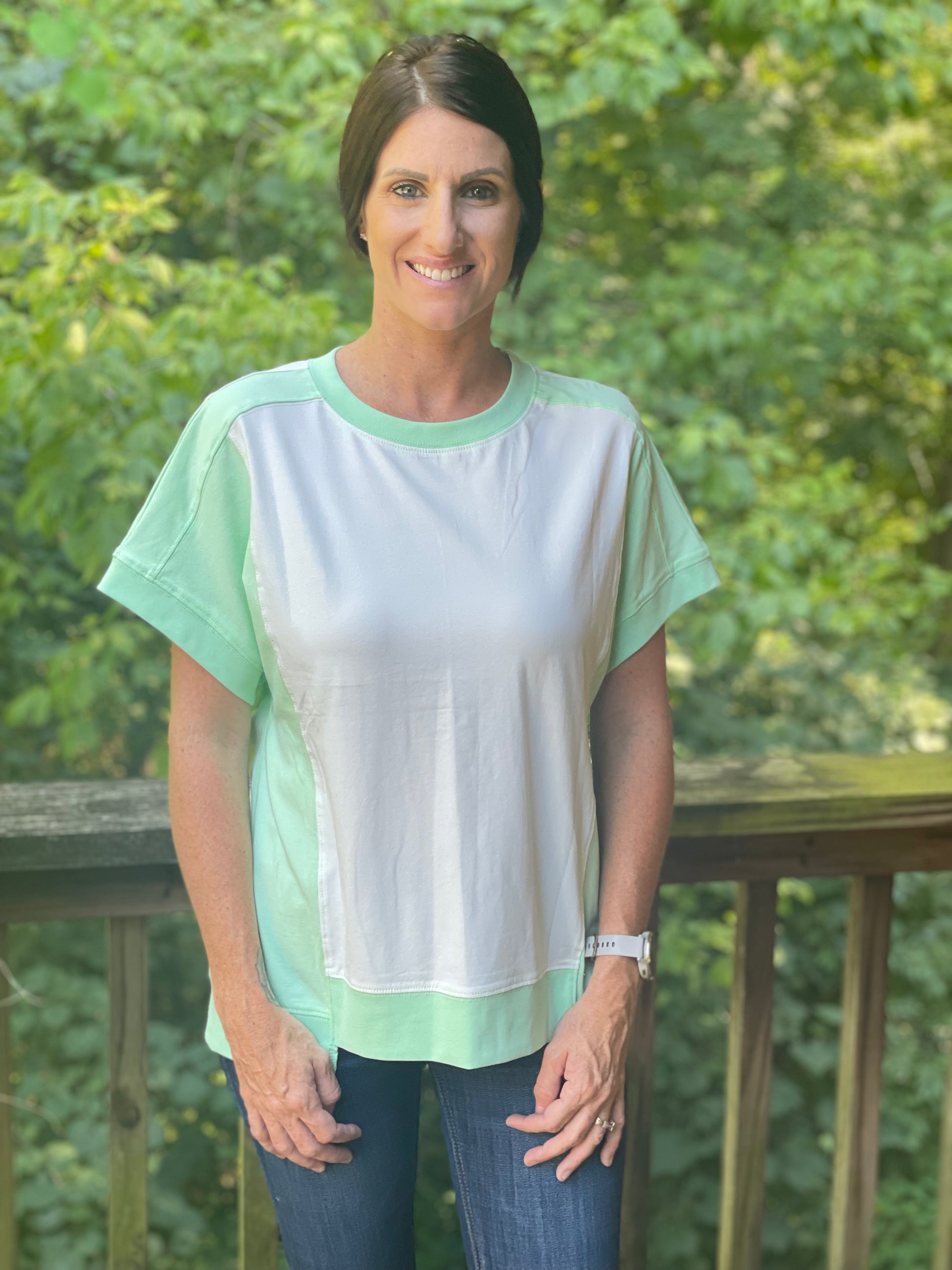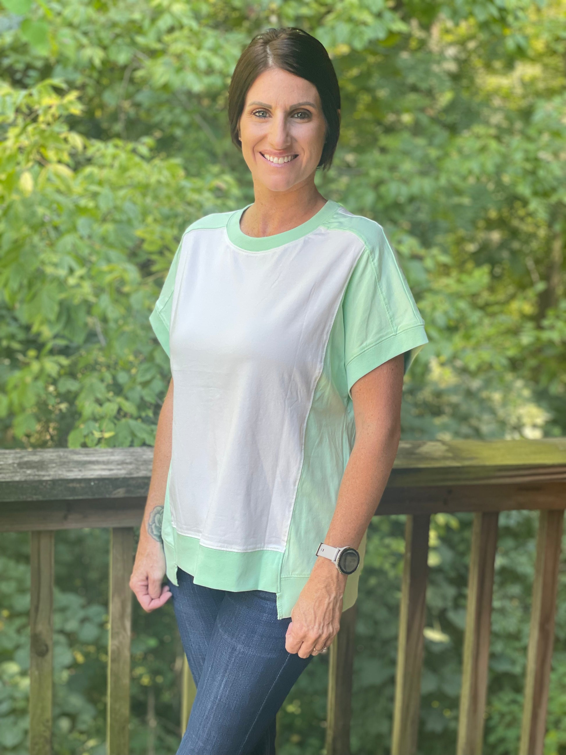 Embrace easy style with The Mint To Be Tee—a relaxed-fit, short-sleeve top that plays with a fresh mint green and crisp white color block design. Soft, stretchy fabric moves with you throughout the day, while playful slits on the sides and a longer back add a cool, breezy vibe perfect for any casual adventure.