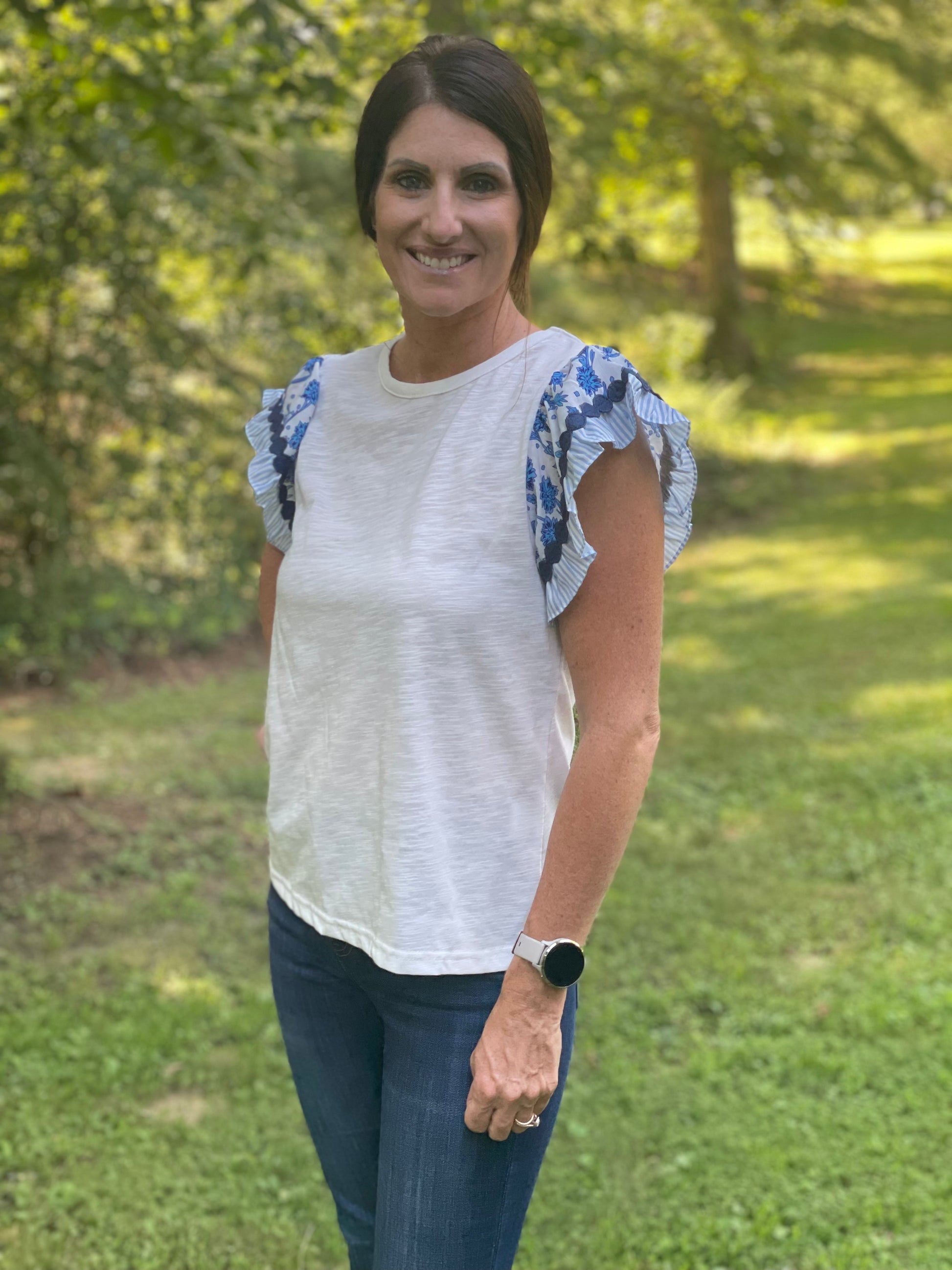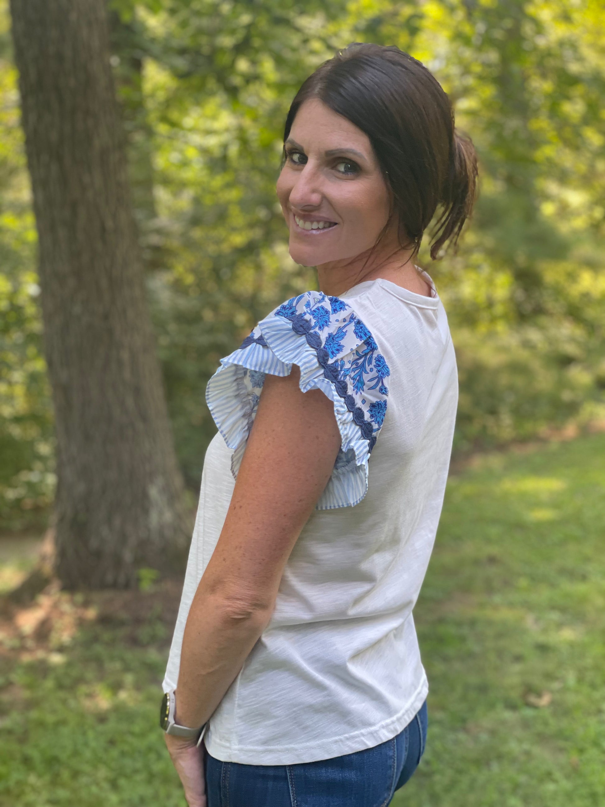 Dive into comfort with The Ocean Breeze Top, featuring playful ruffle sleeves in a delightful mix of blue shades. Soft, stretchy fabric ensures a cozy fit that moves with you, making every moment feel like a breeze by the sea. Perfect for adding a splash of fun to your everyday style!