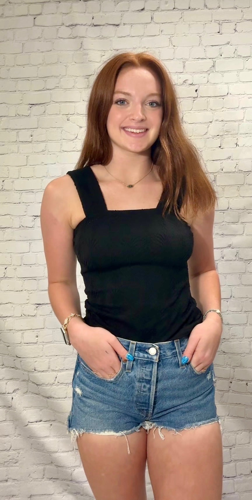 The Sidekick Tank is your new go-to for effortless style and comfort. Featuring thick, stretchy straps and a soft, textured fabric, it hugs you just right without ever feeling tight. The playful square neckline adds a fun twist, making it perfect for layering or wearing solo on sunny days. Get ready to move, lounge, and live comfortably in this must-have tank!