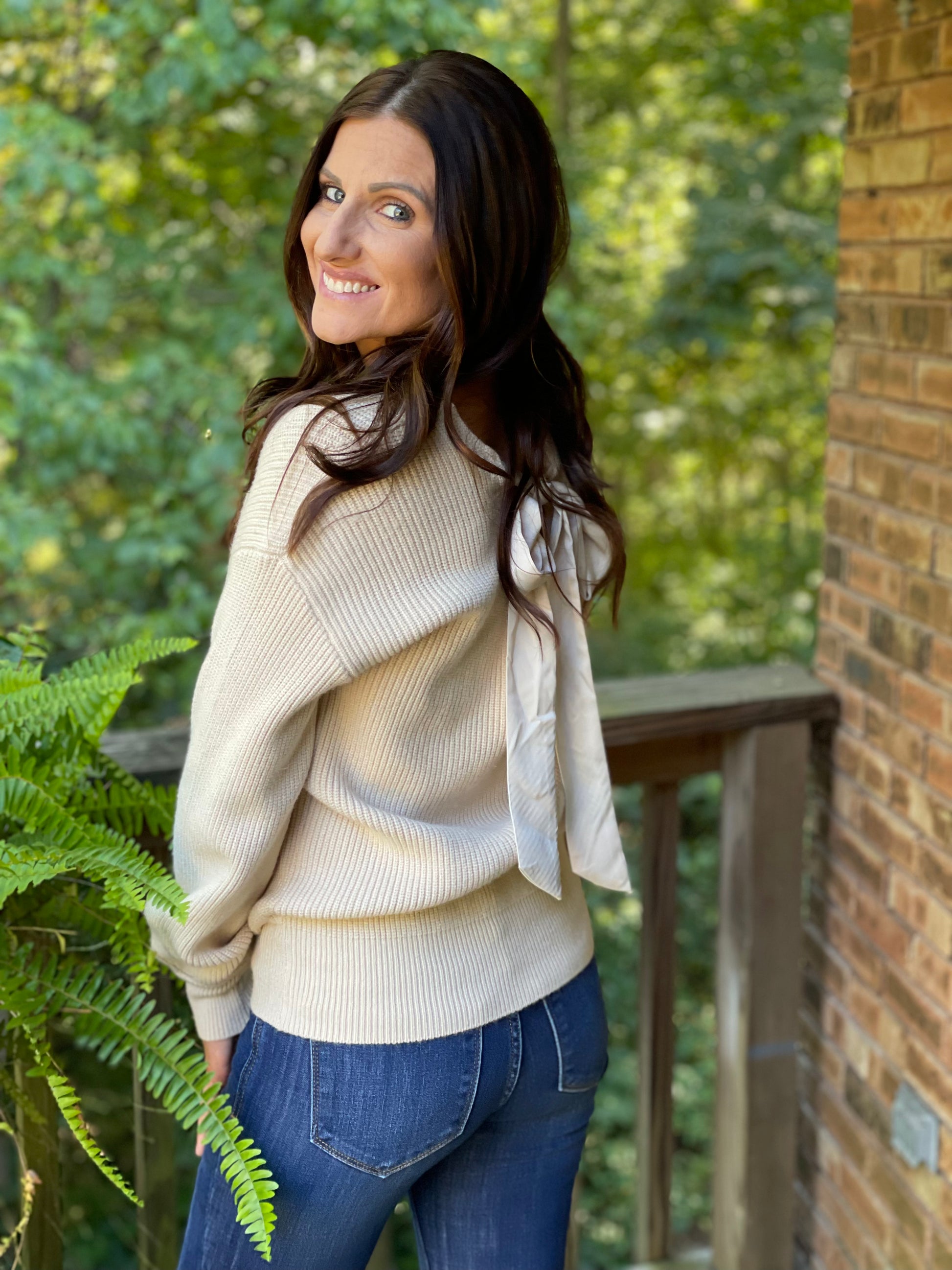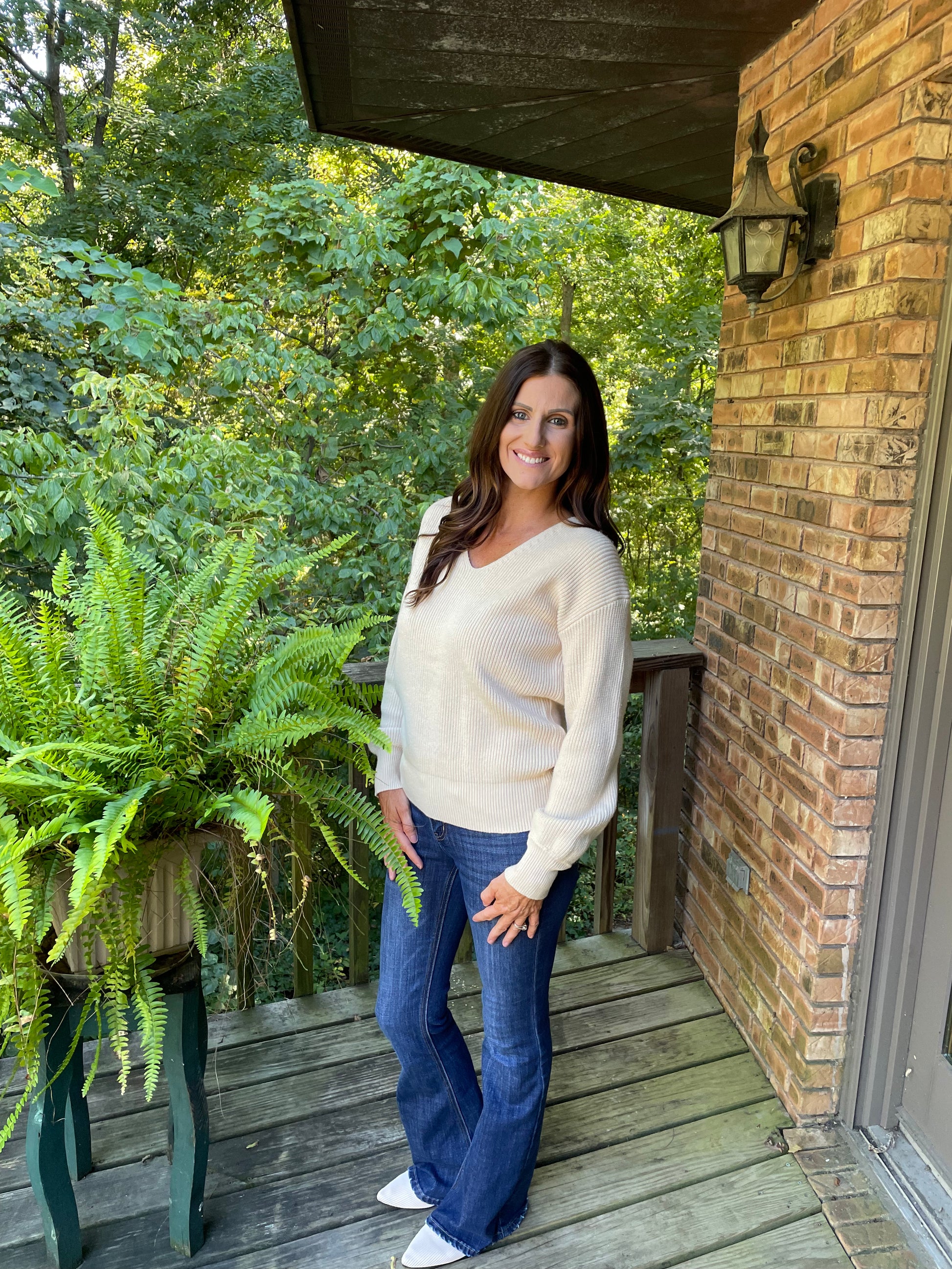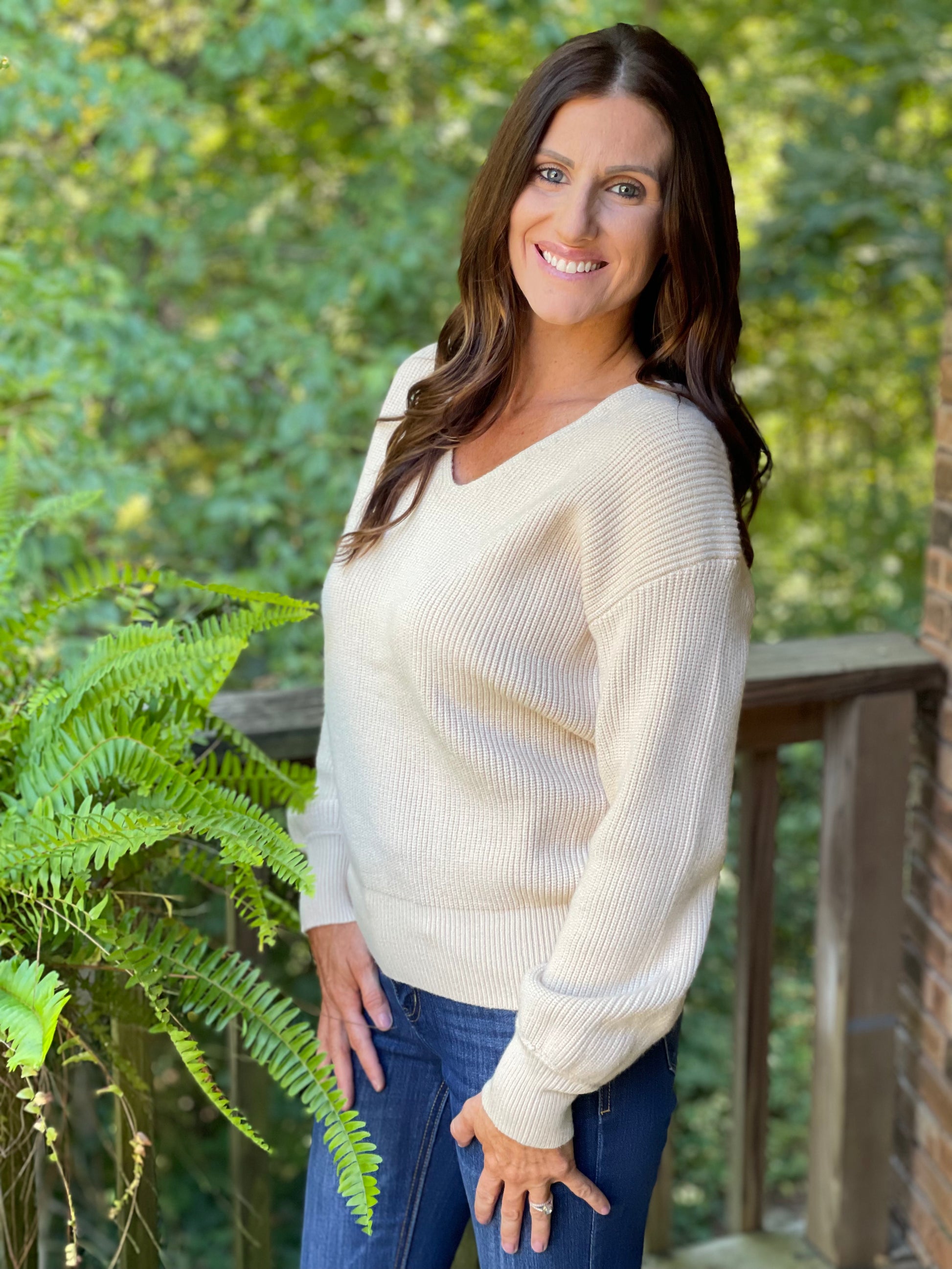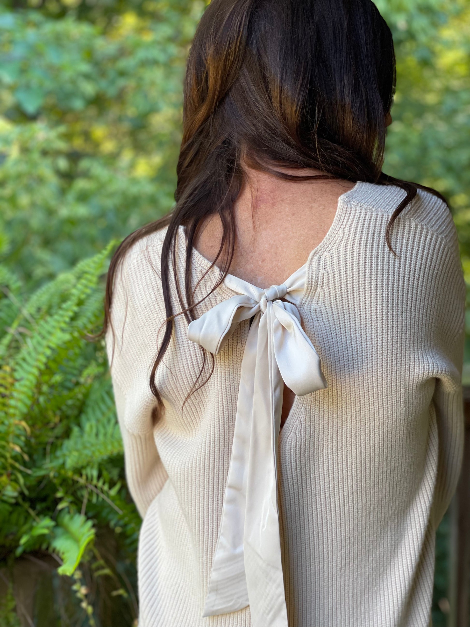 The Sweet Surprise Sweater features a flattering V-neck and a playful bow in the back, adding a cute twist to your look. Crafted from super soft, stretchy fabric, it feels like a cozy hug all day long. Perfectly versatile, it pairs effortlessly with anything—dress it up for a night out or keep it casual for everyday charm. Slip into comfort and style with this must-have sweater!